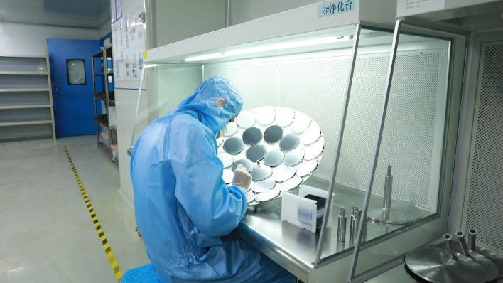净化台前,技术人员按照流程熟练地上图蒸发上片。