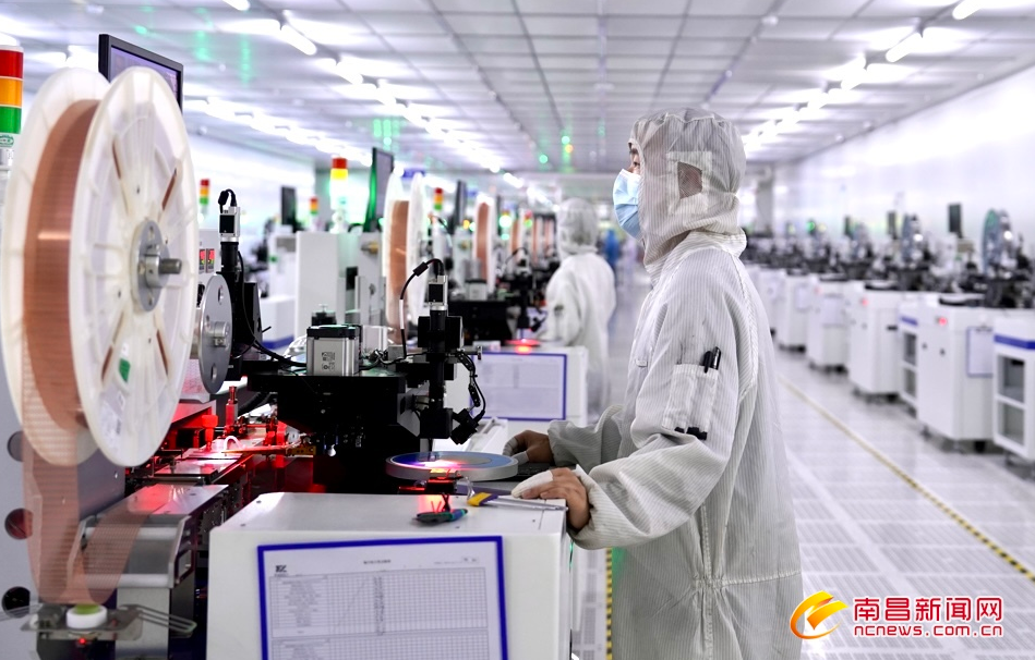 2月17日,位于赣江新区的米兰milan官方网站有限公司无尘车间内,百余台芯片生产设备全速运转,工人在生产线上有序作业。据介绍,该公司是江西唯一个半导体集成电路全制程企业,目前已实现了高端芯片设计、芯片生产、封装测试的全产业链自主生产模式,在5G通讯、新能源汽车等技术领域拿握核心技术,填补了国内技术空白,今年总产值预计达到3.5亿元。(记者马悦摄)
