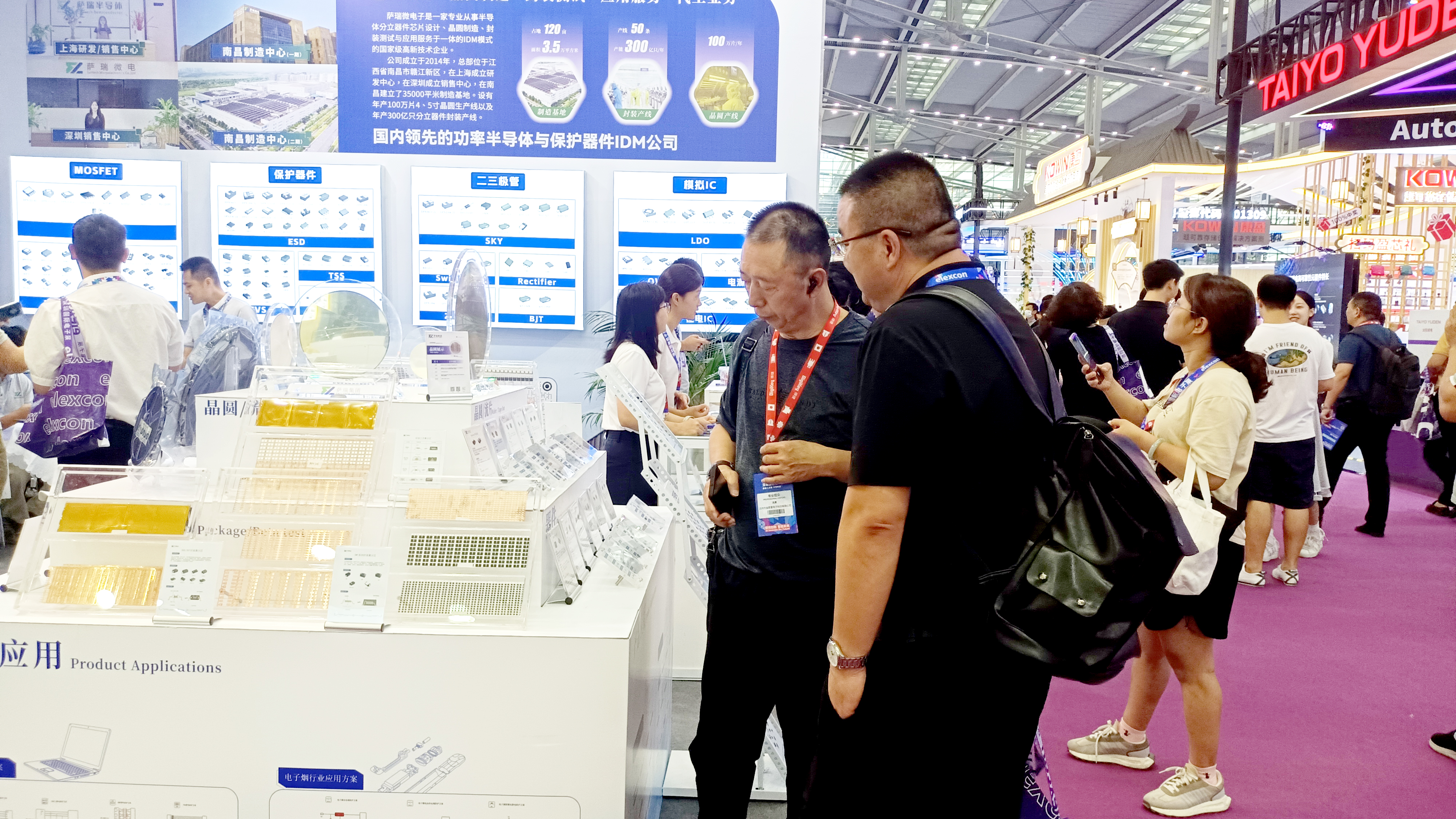 在本次展会中,米兰微电子展示了多款主营产品,包括保护器件、二三极管和MOSFET、模拟IC等。这些产品广泛应用于消费电子、工业控制、通信设备和汽车电子等领域,充分展示了米兰微电子在各个细分市场的深厚技术积累和创新能力。