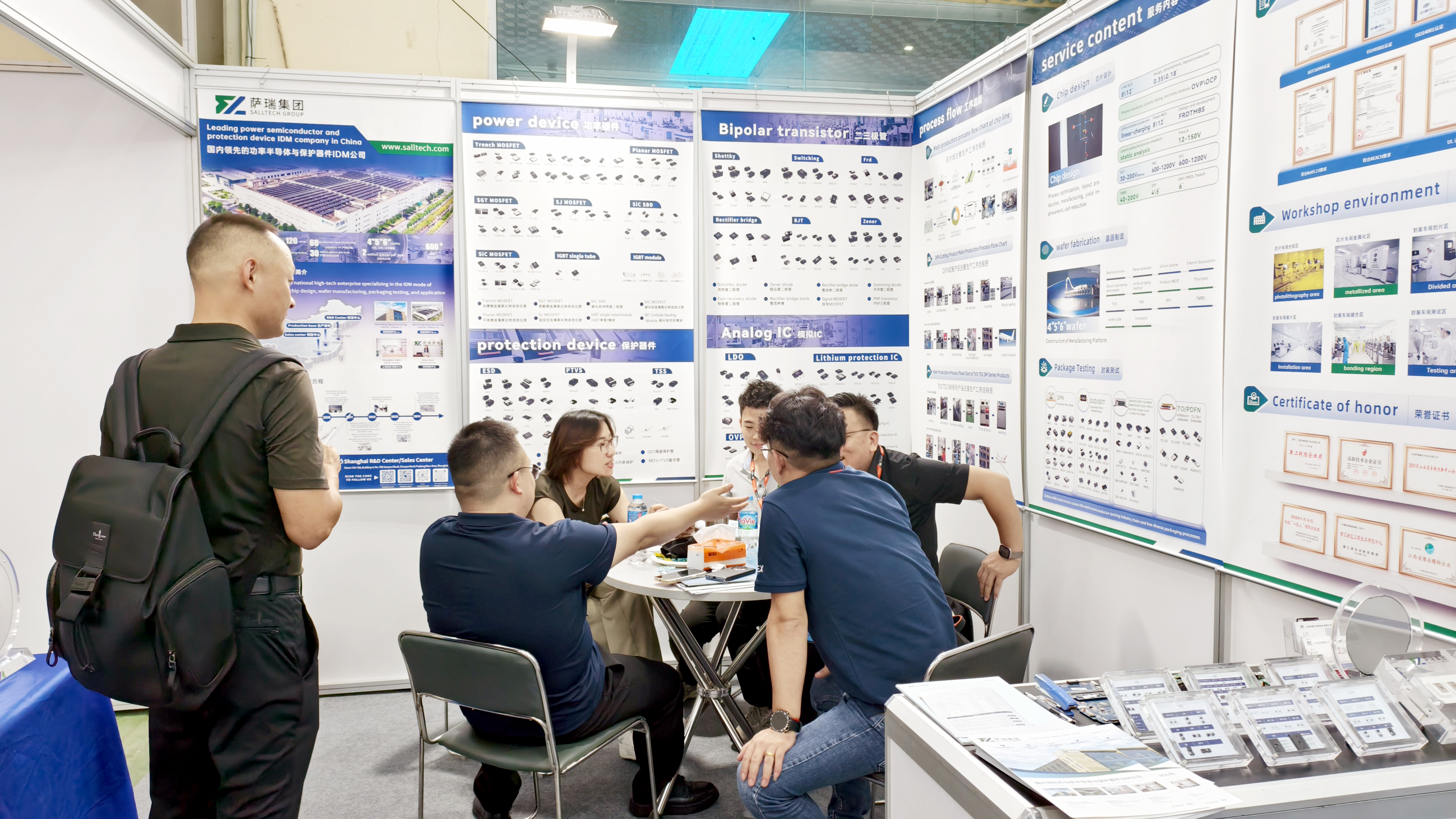 在本次展会上,江西米兰微电子展示了多款主营产品,包括:功率器件、保护器件、二三极管、模拟IC等器件。